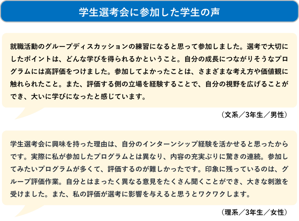 学生のリアルな声や評価ポイントを、みなさんのプログラム構築の参考にしてみてください。